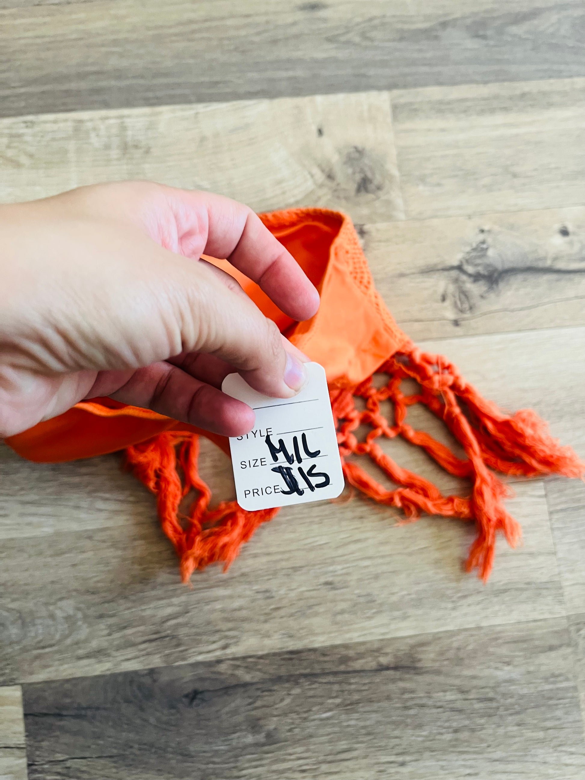 Details: Orange crochet cropped tube top with fringe detailing going down the top. Such a cute style to wear for any occasion. Size M/L fits true to size!