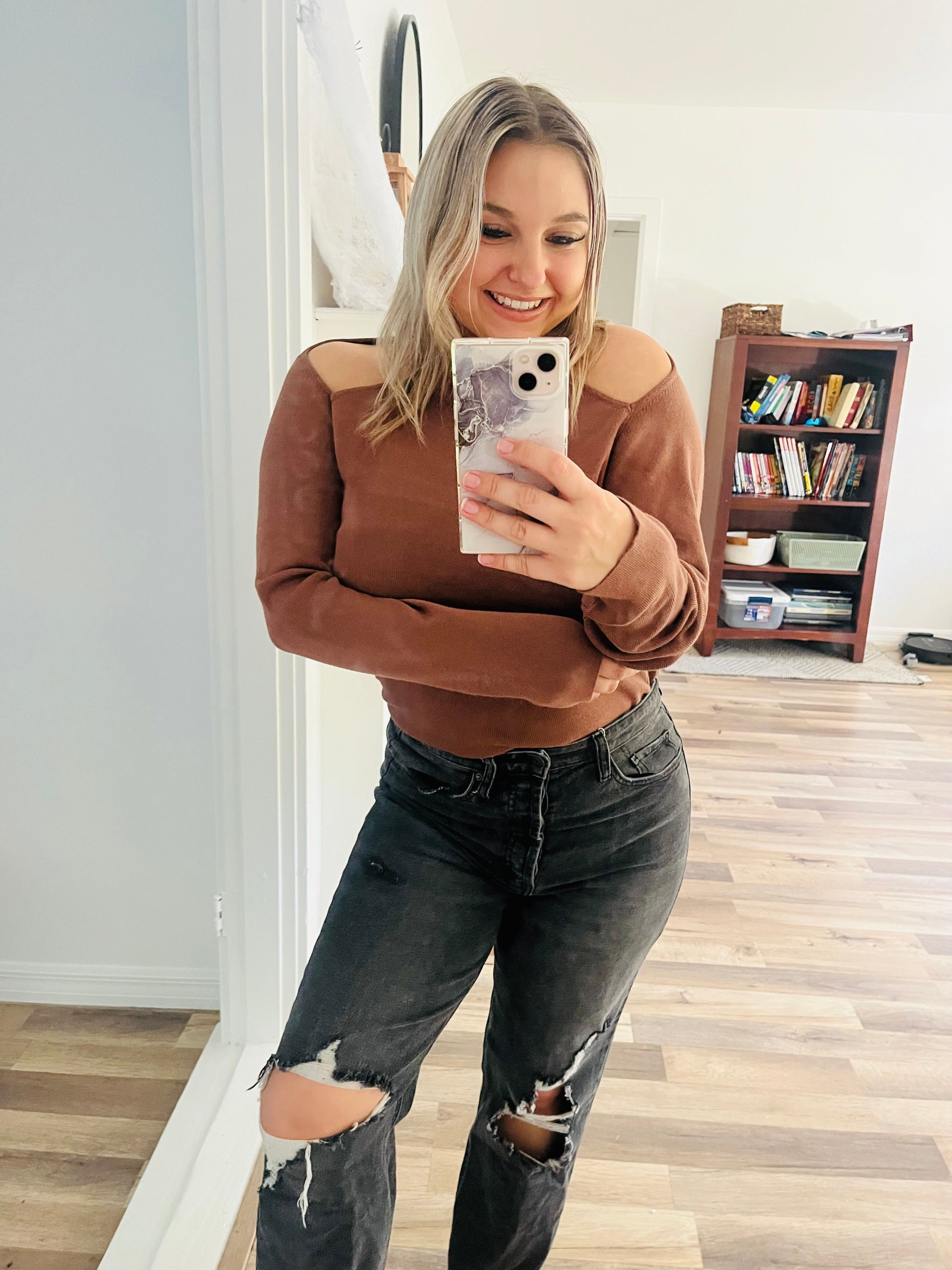 Details: Intempo brown long sleeve top with cut outs at the shoulder areas. Size large! Fits true to size. This top is NWOT ( New without tags) and is a soft material to keep you warm all fall / winter long!i